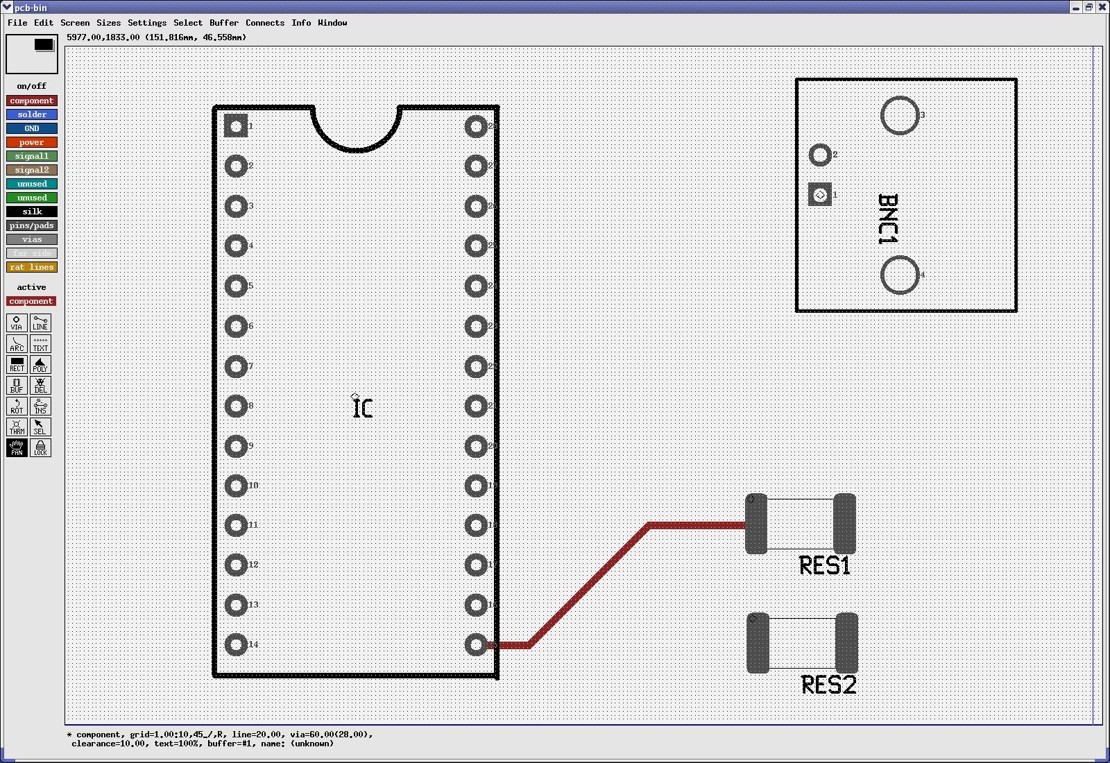 15 of the DIP footprint to the left pad of RES1. Your layout